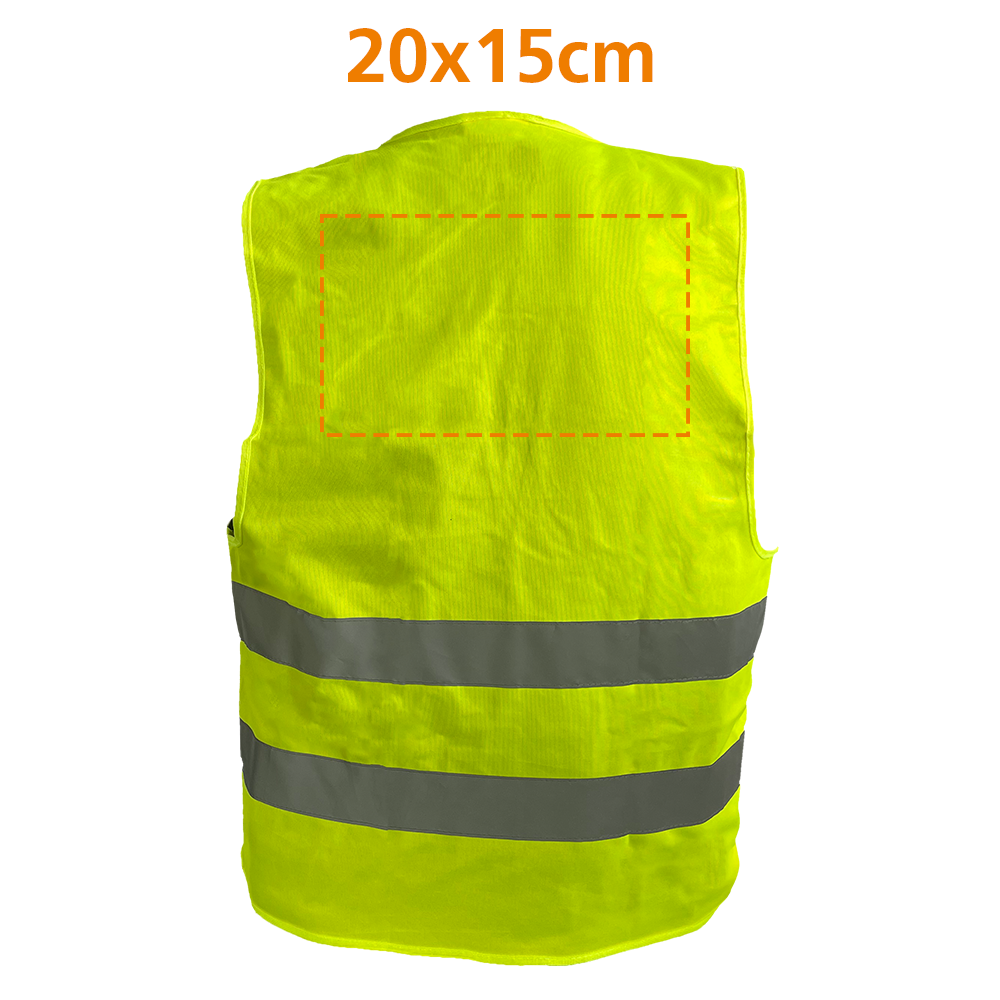 Die Größenverstellung dieser bedruckbaren Warnweste erfolgt mühelos durch zwei robuste Klettverschlüsse.